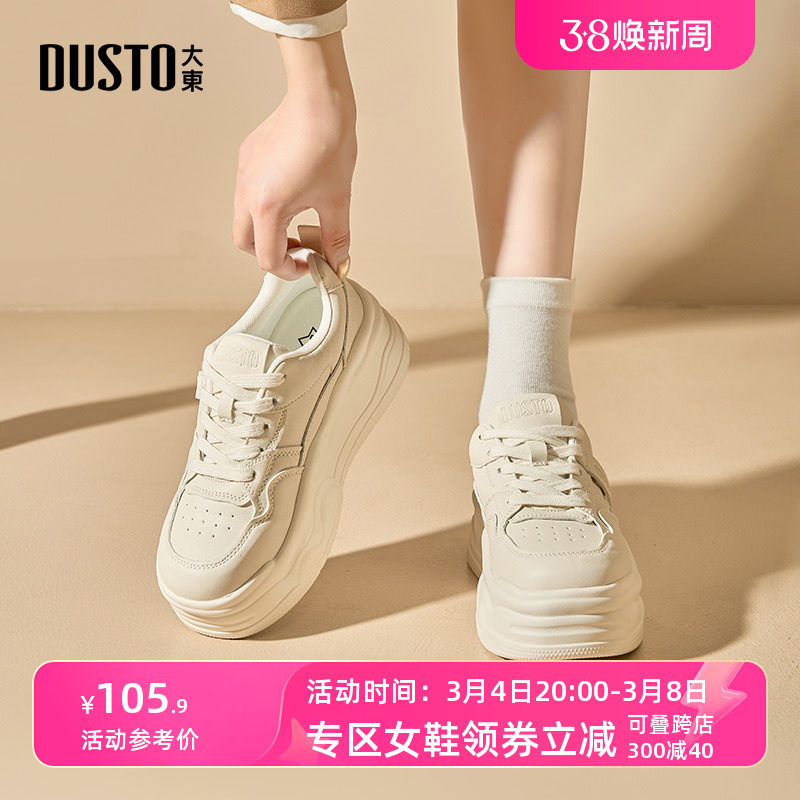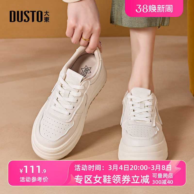 大东小白鞋女真皮2023春季新款百搭学生女鞋休闲运动鞋厚底板鞋女