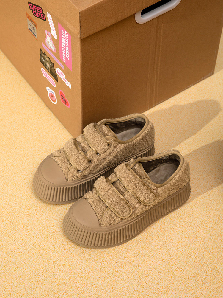 大东官方旗舰店小白鞋女2023早春新款休闲潮流魔术贴厚底绒包鞋