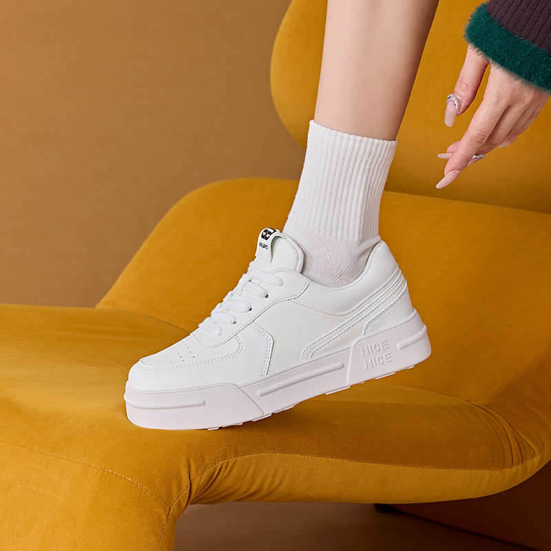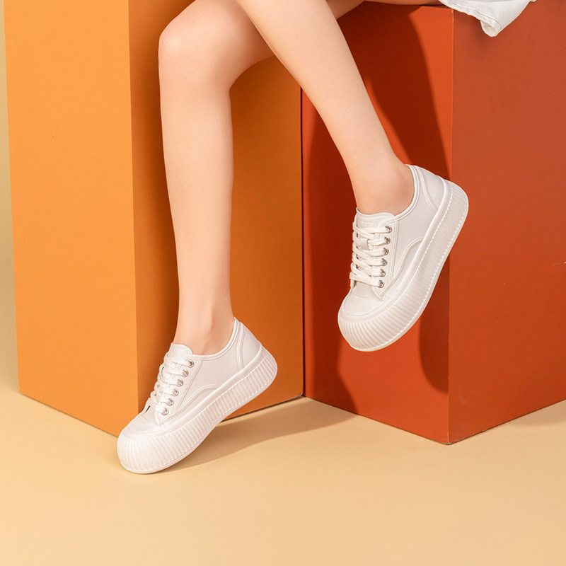 大东小白鞋女2023春季新款休闲厚底圆头纯色系带时尚板鞋0313