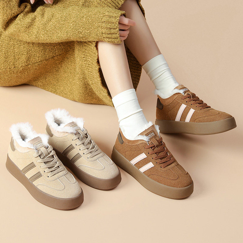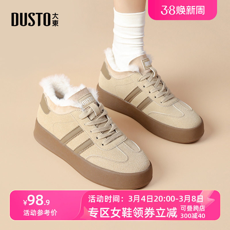 大东官方旗舰店小白鞋女2023早春新款圆头泰迪毛可爱饼便捷板鞋