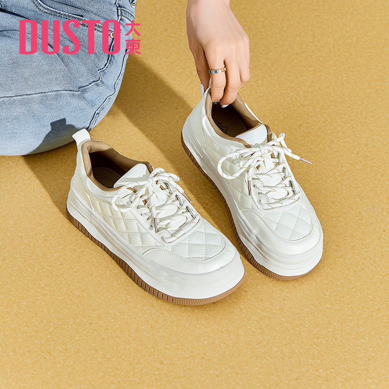 大东官方旗舰店小白鞋女2023春季新款休闲厚底面包鞋菱格圆头板鞋