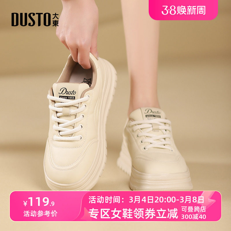 大东小白鞋女鞋2024春新款休闲系带小个子圆头厚底板鞋0301
