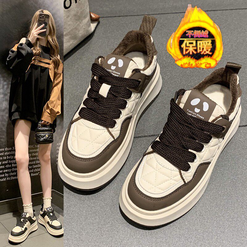 大东可爱小白鞋女春秋新款休闲面包鞋魔术贴绒里大头鞋0655