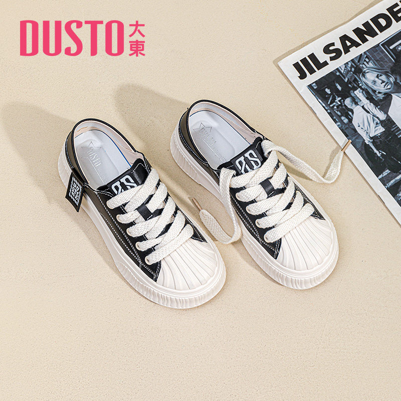大东时尚板鞋女2023夏季新款休闲风低跟平底小白鞋圆头女鞋0311