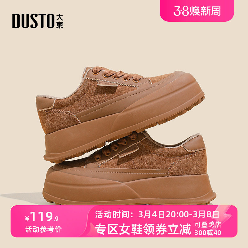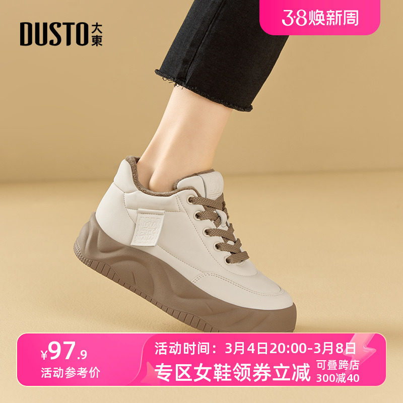 大东板鞋2024早春新款休闲厚底系带圆头绒里拼接小白鞋女鞋0670