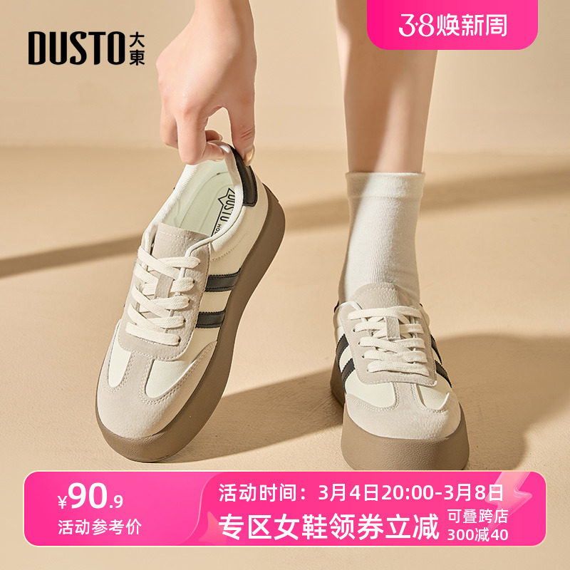 大东官方旗舰店小白鞋女2023早春新款潮流圆头系带撞色运动板鞋