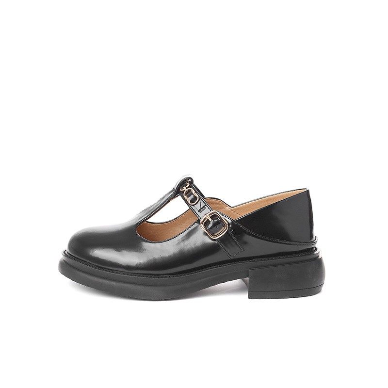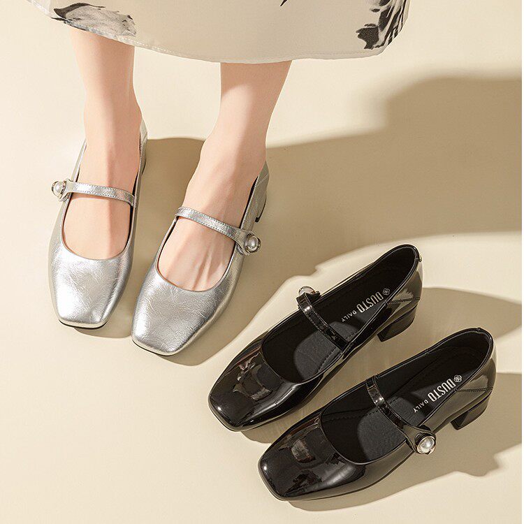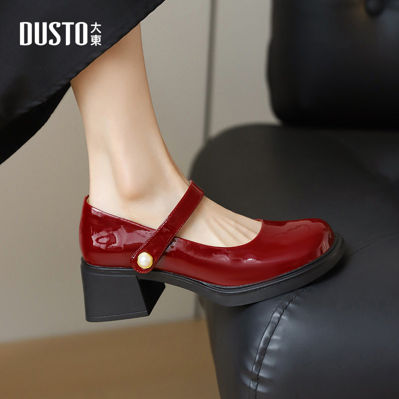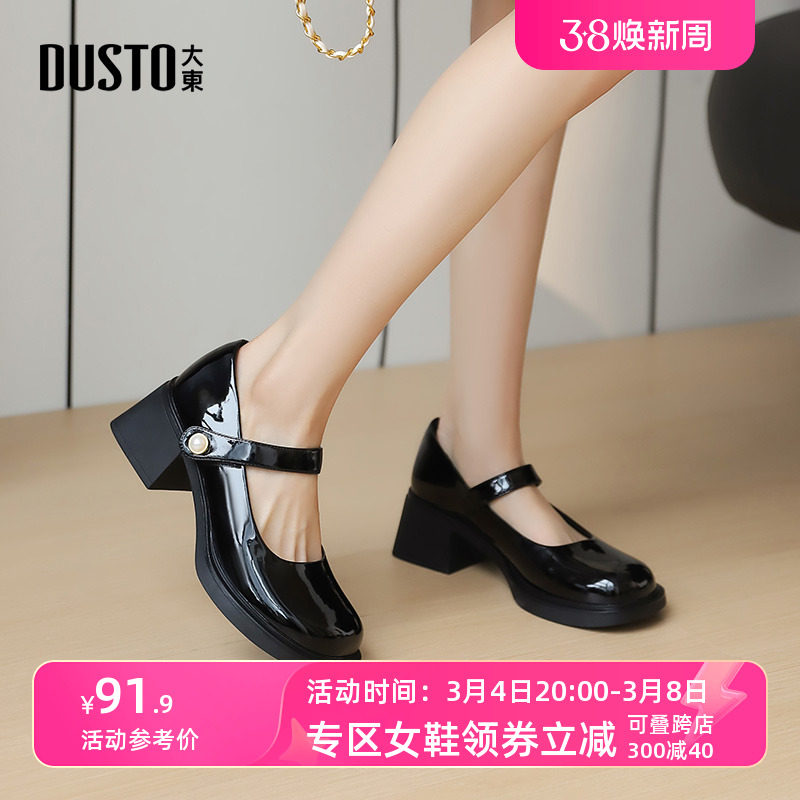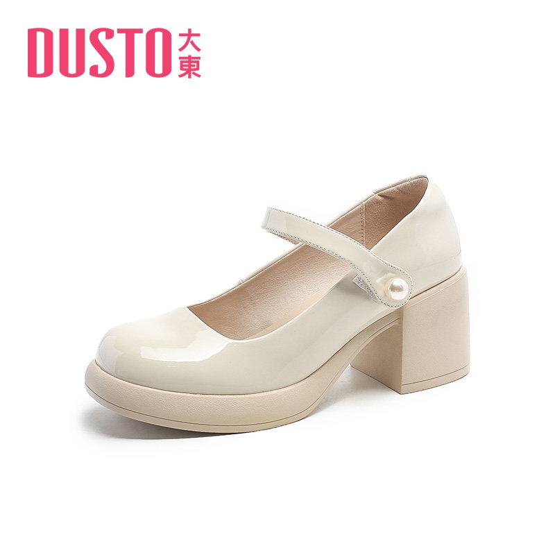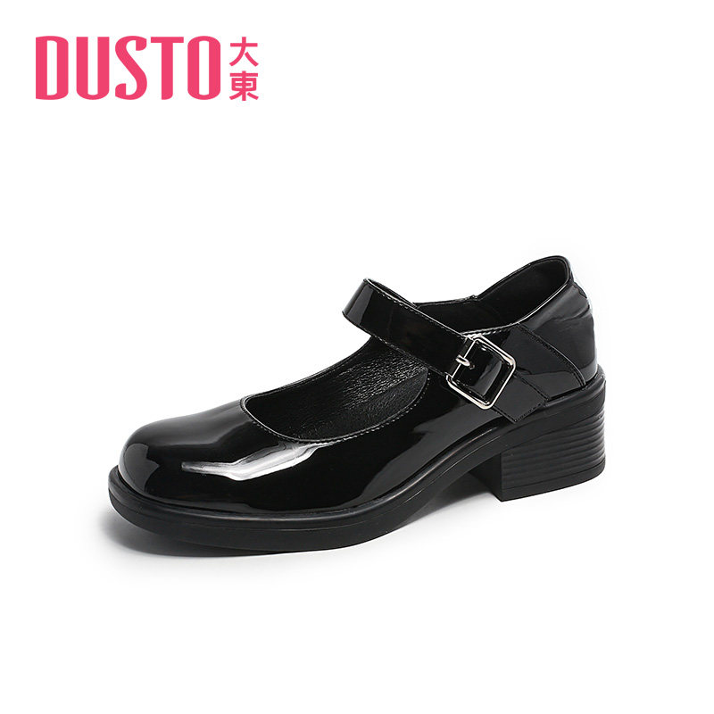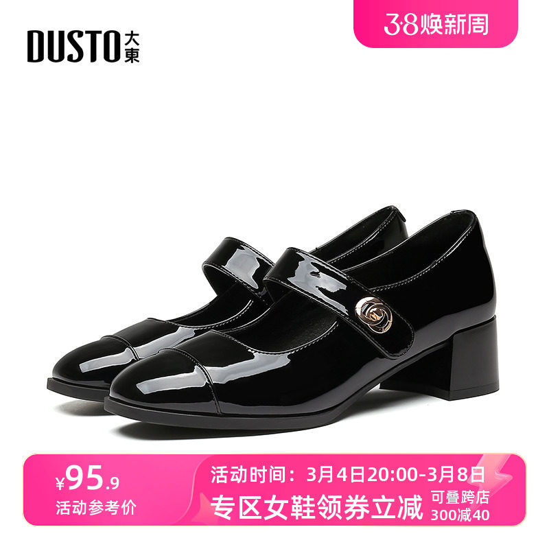 大东玛丽珍女鞋2024早春新款甜美气质圆头魔术贴粗跟亮面单鞋0120