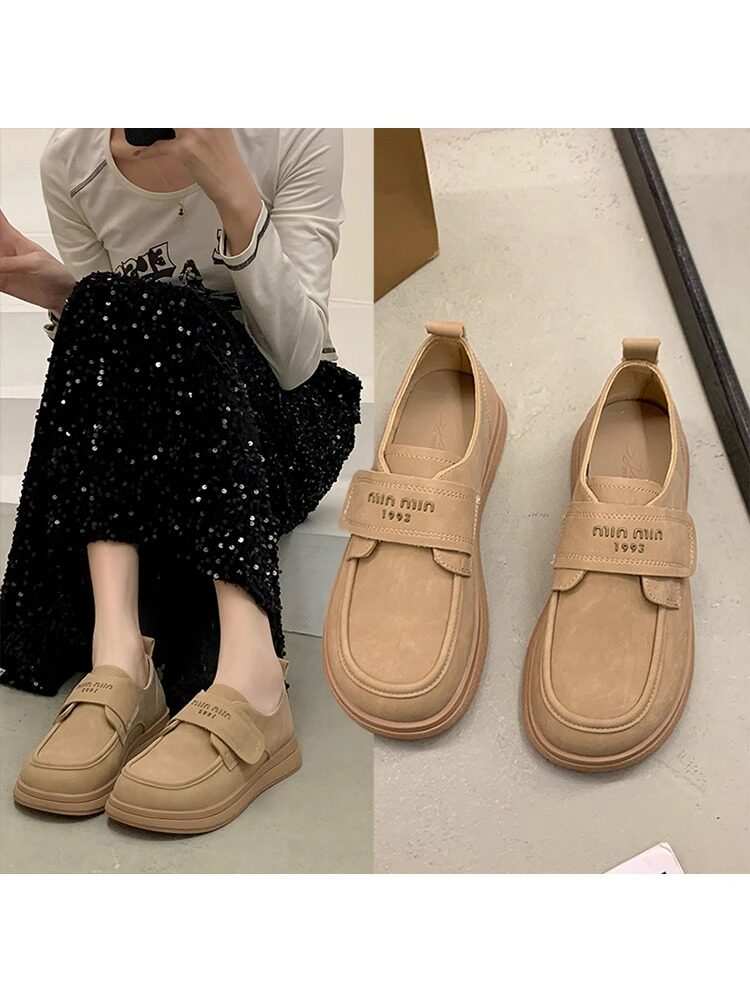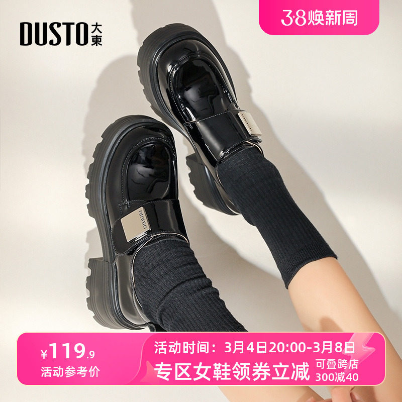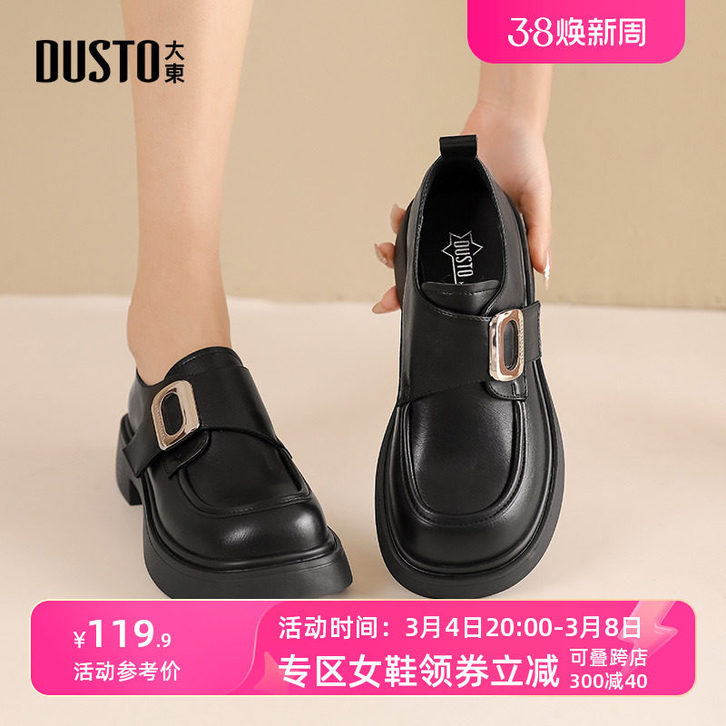 大东乐福鞋女鞋2024春秋新款休闲厚底魔术贴小皮鞋皮带扣单鞋0117