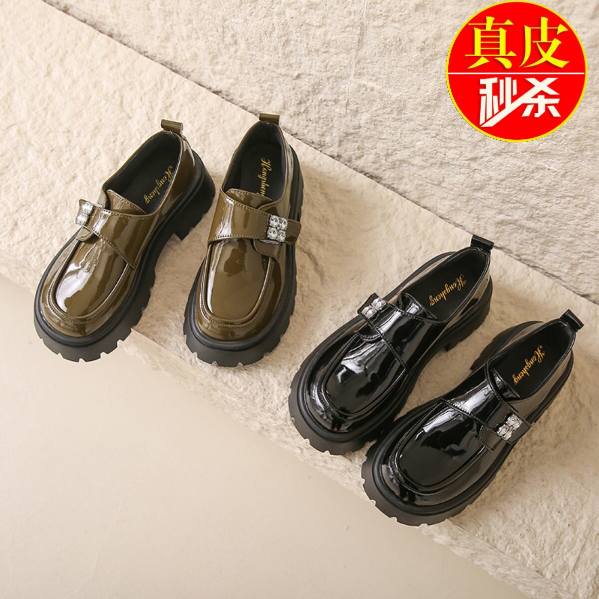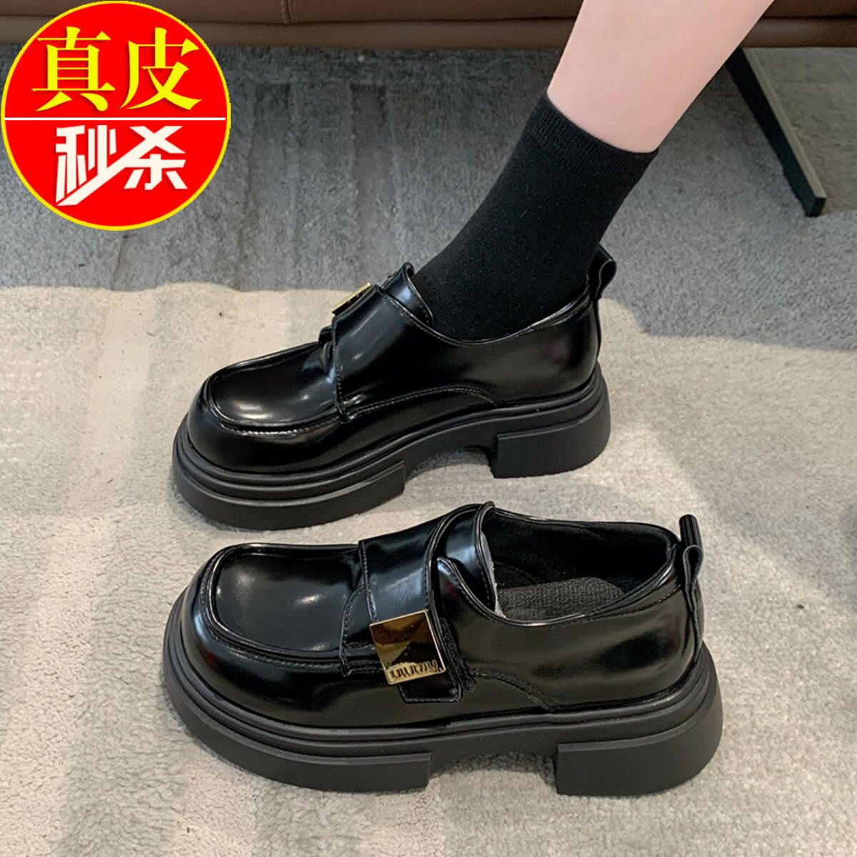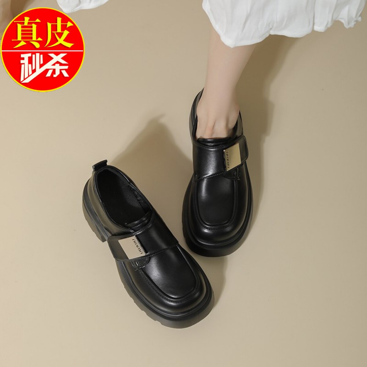 真皮厚底小皮鞋女学院英伦风魔术贴jk单鞋2024新款春秋黑色乐福鞋