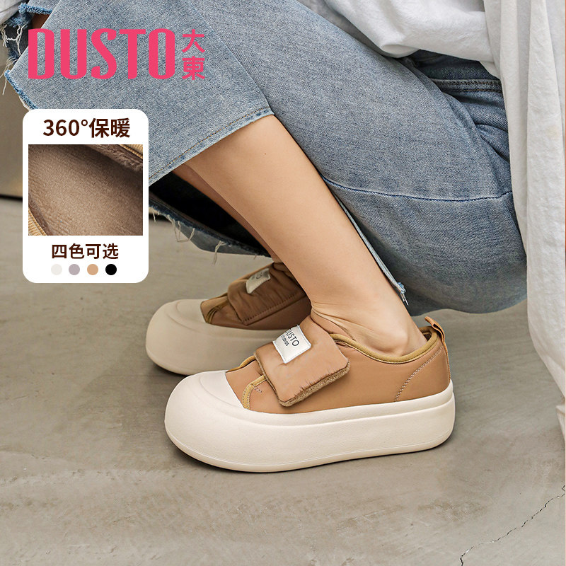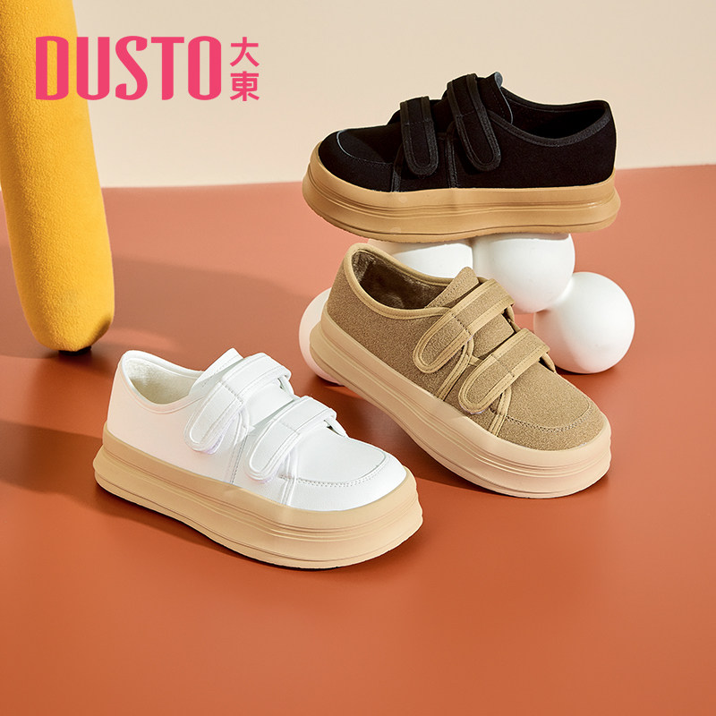 大东官方旗舰店小白鞋女2023早春新款休闲潮流魔术贴厚底绒包鞋