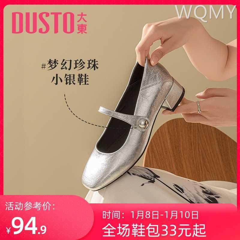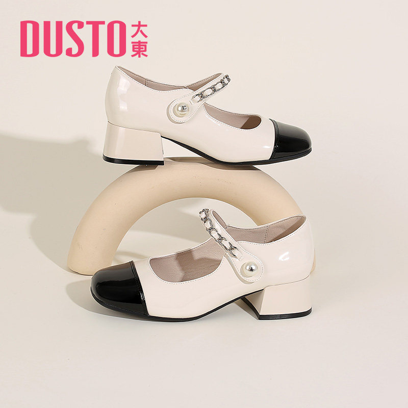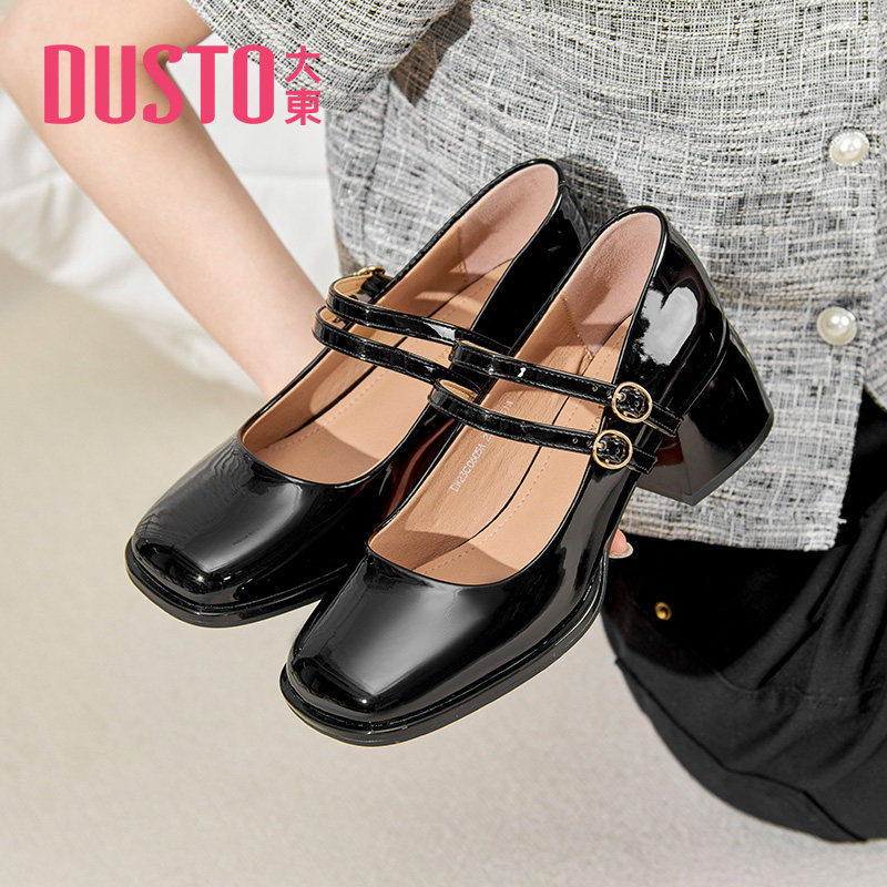 DUSTO/大东浅口单鞋女2023年秋季新款复古方头魔术贴中跟女鞋0003