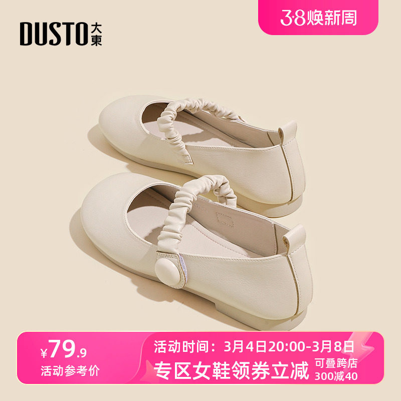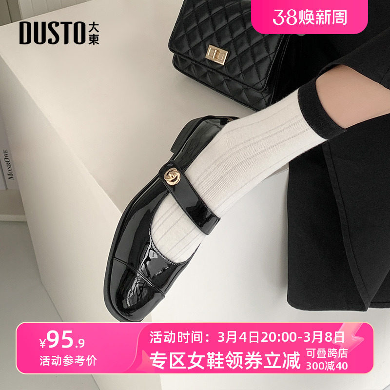 大东浅口鞋女2023秋季新款甜美玛丽珍方头魔术贴平跟单鞋女鞋0662