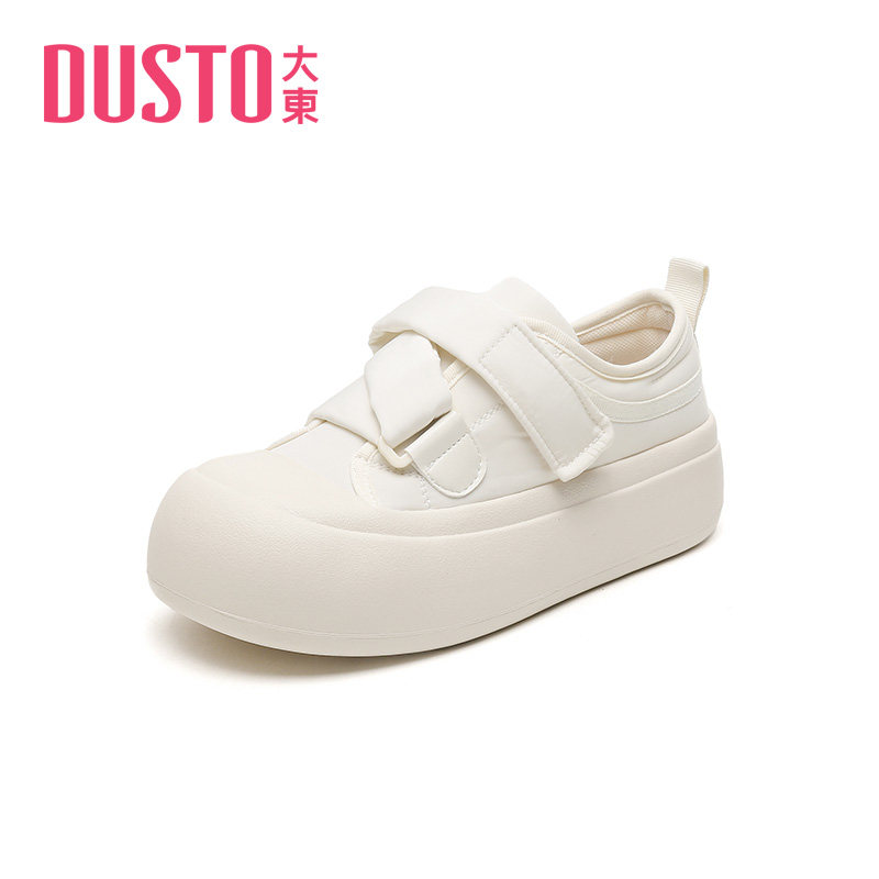 大东可爱小白鞋女春秋新款休闲面包鞋魔术贴绒里大头鞋0655