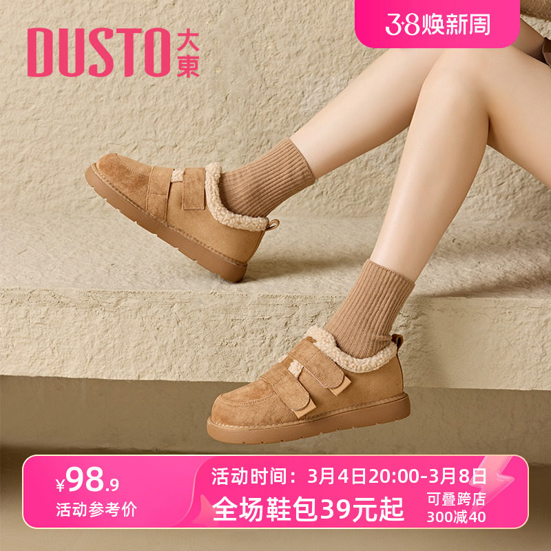大东毛毛鞋2023年冬季新款日系低跟平底魔术贴圆头绒面女鞋0722
