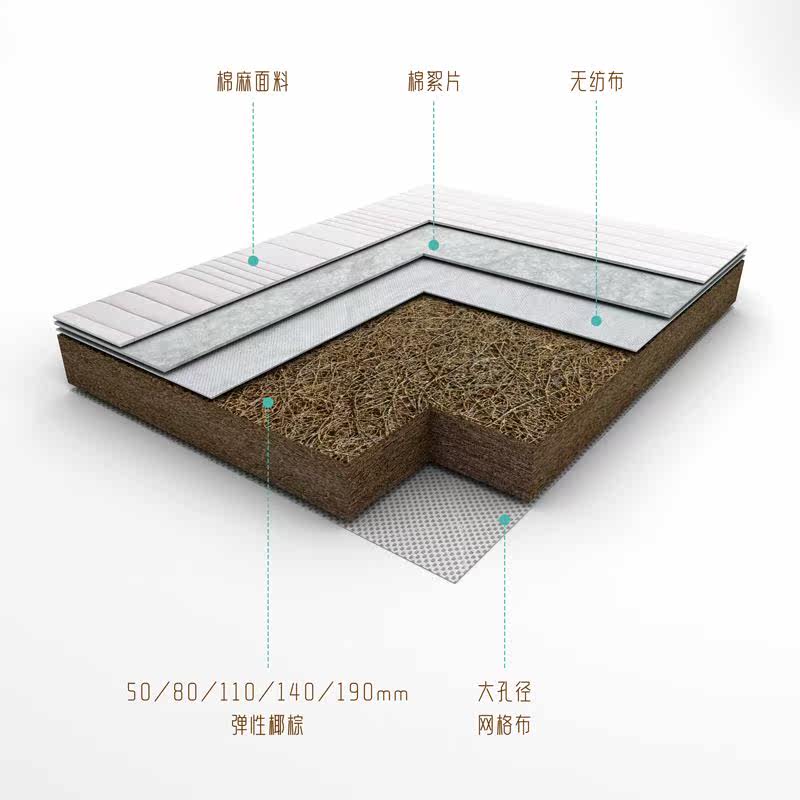 大自然床垫旗舰店椰棕偏硬护脊棕垫植物剑麻1.5米1.8席梦思 沉静