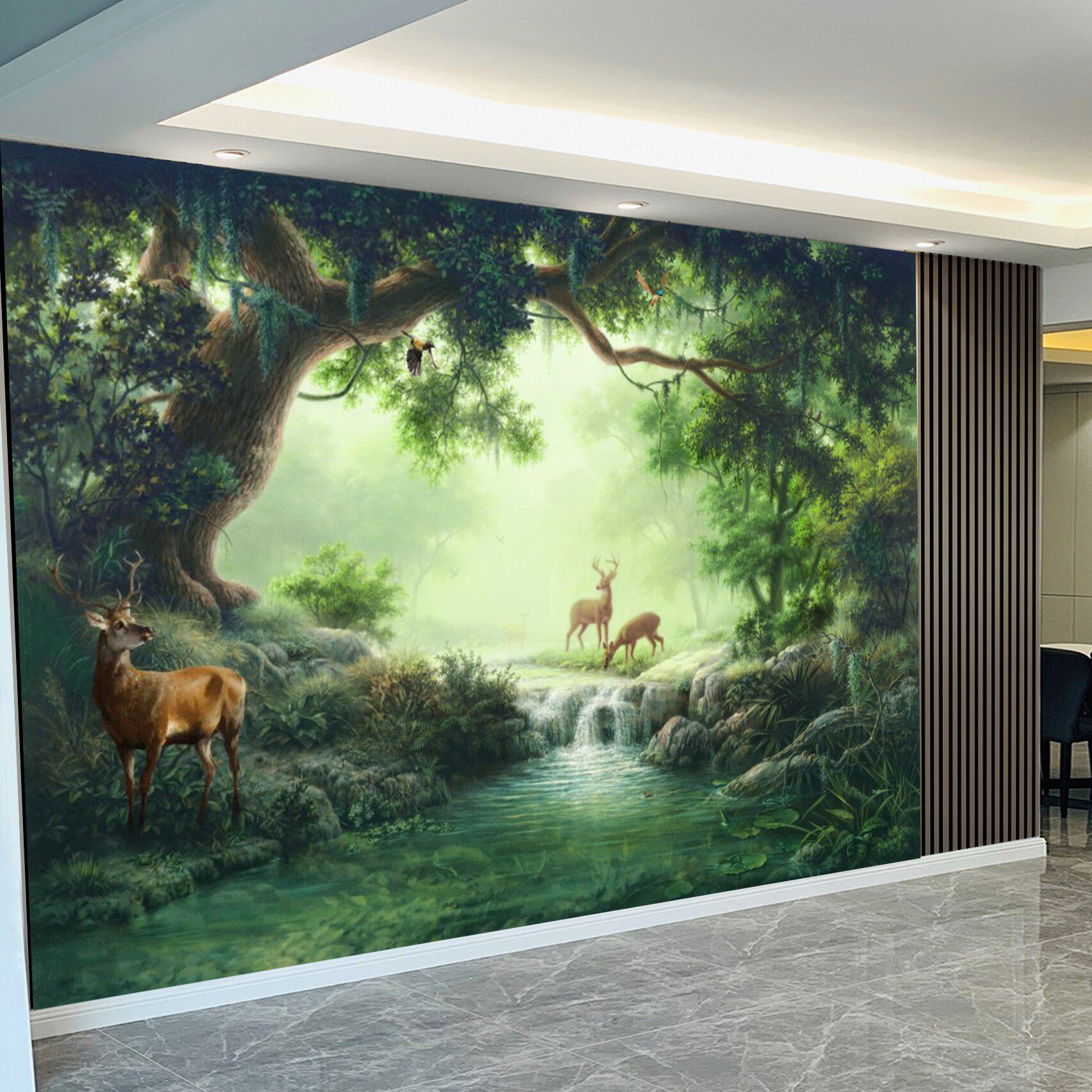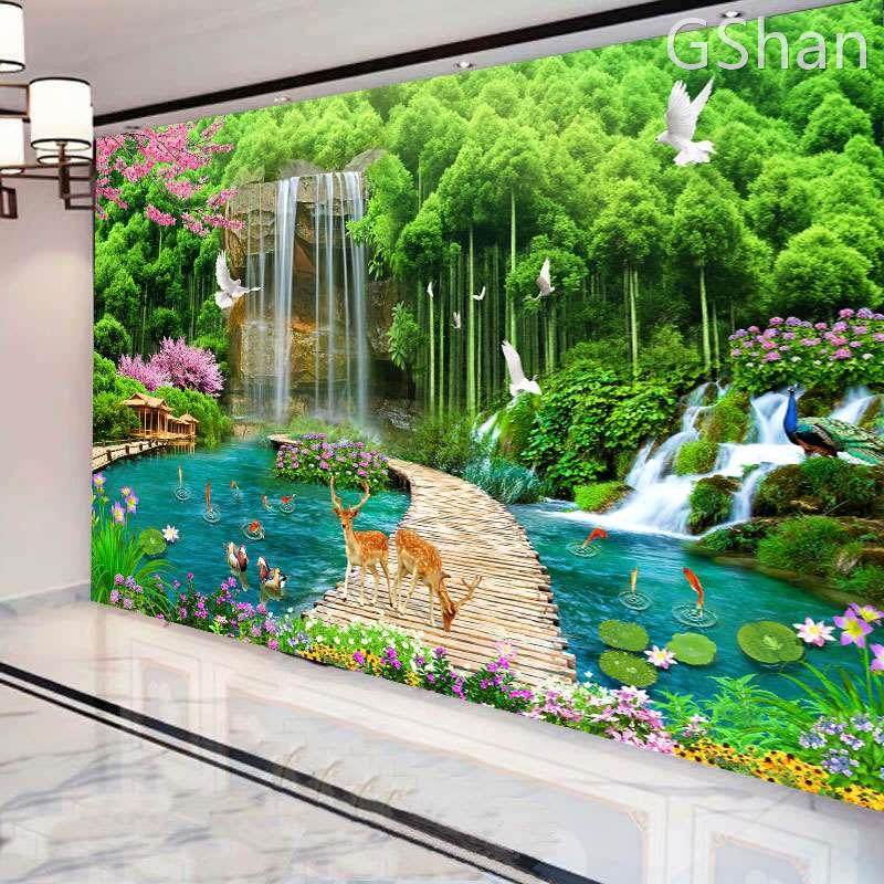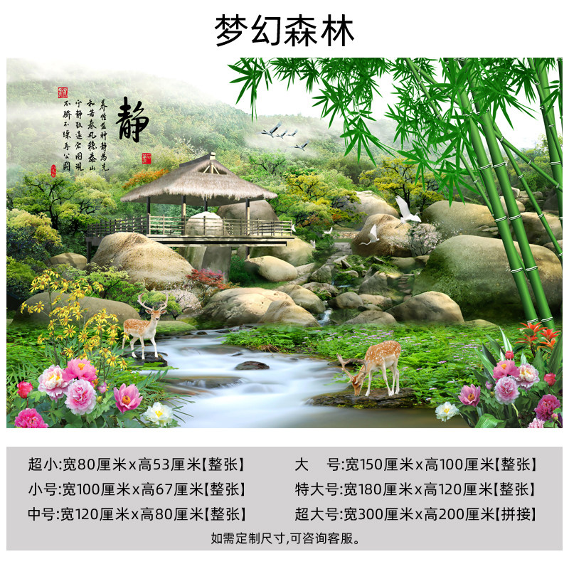 M3D大自然山水风景森林树林墙纸沙发餐厅酒店背景墙布壁画装饰画