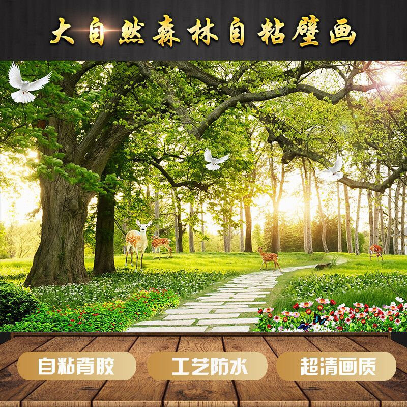墙纸画3D装饰画墙贴大自然森林风景自粘画沙发卧室电视背景墙壁d