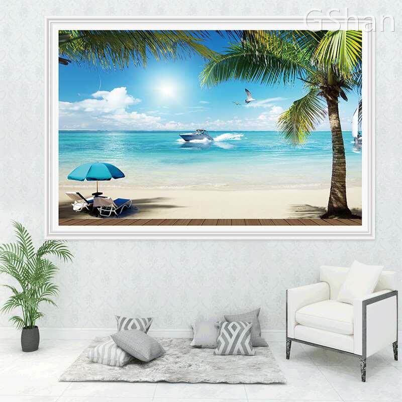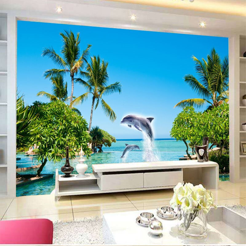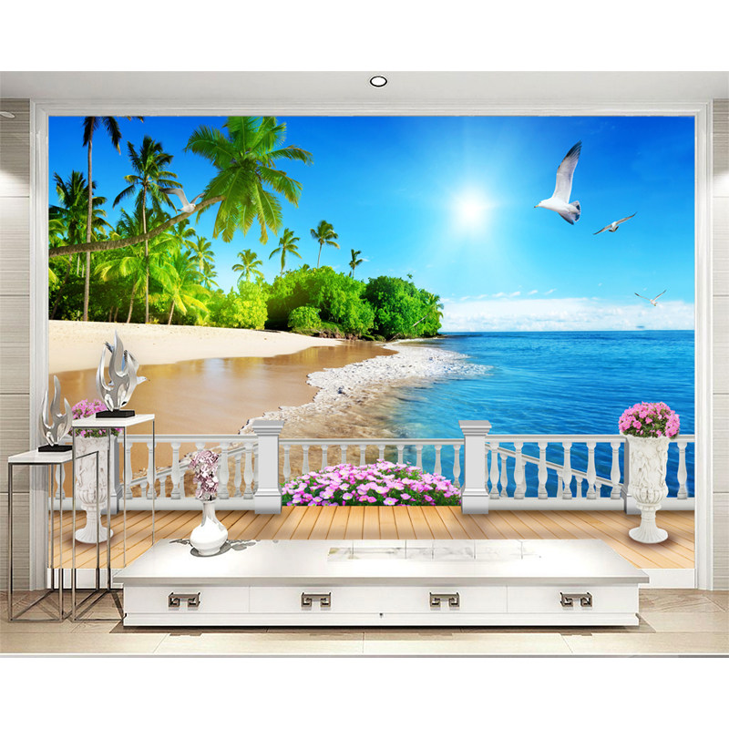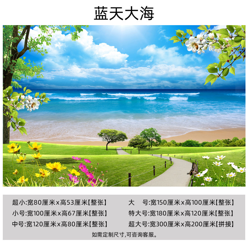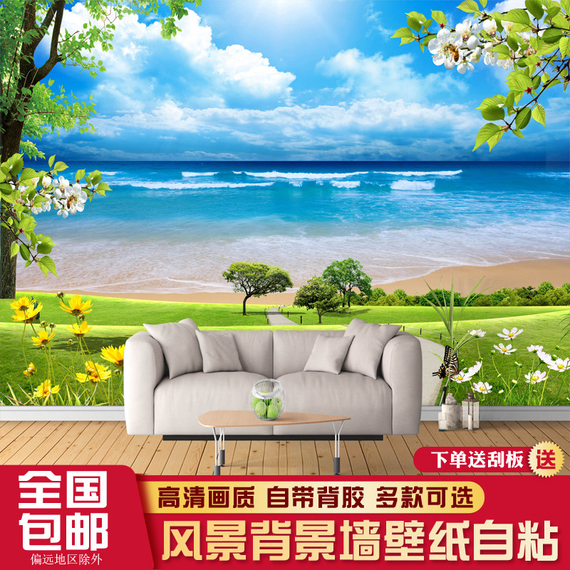 大自然背景3d立体贴画海景电视沙发墙纸自粘壁画风景装饰墙画墙面