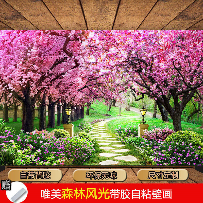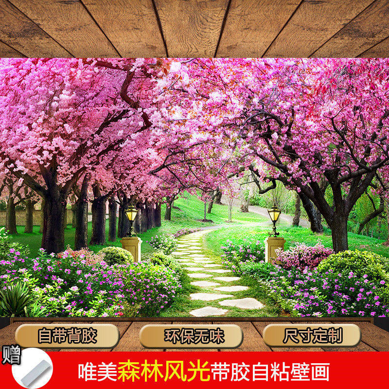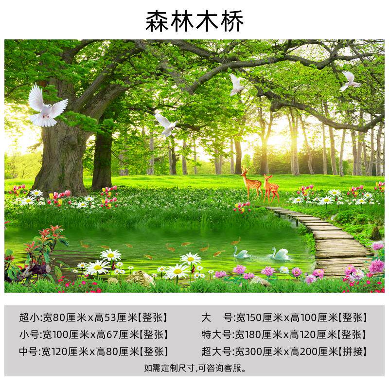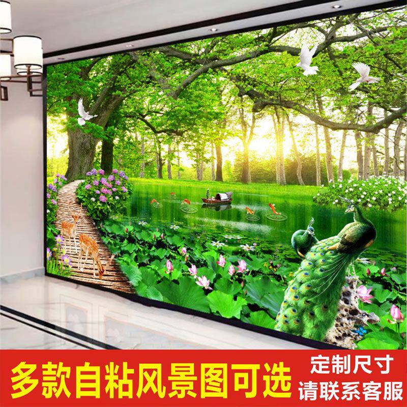 墙纸画3D装饰画墙贴大自然森林风景自粘画沙发卧室电视背景墙壁r