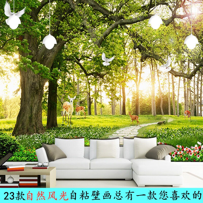 直供大自然风景贴画森林自粘墙纸卧室客厅沙发墙贴电视背景墙壁纸