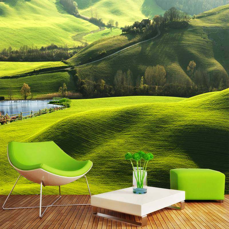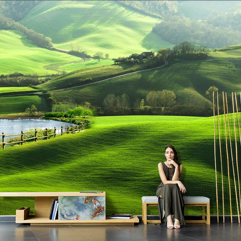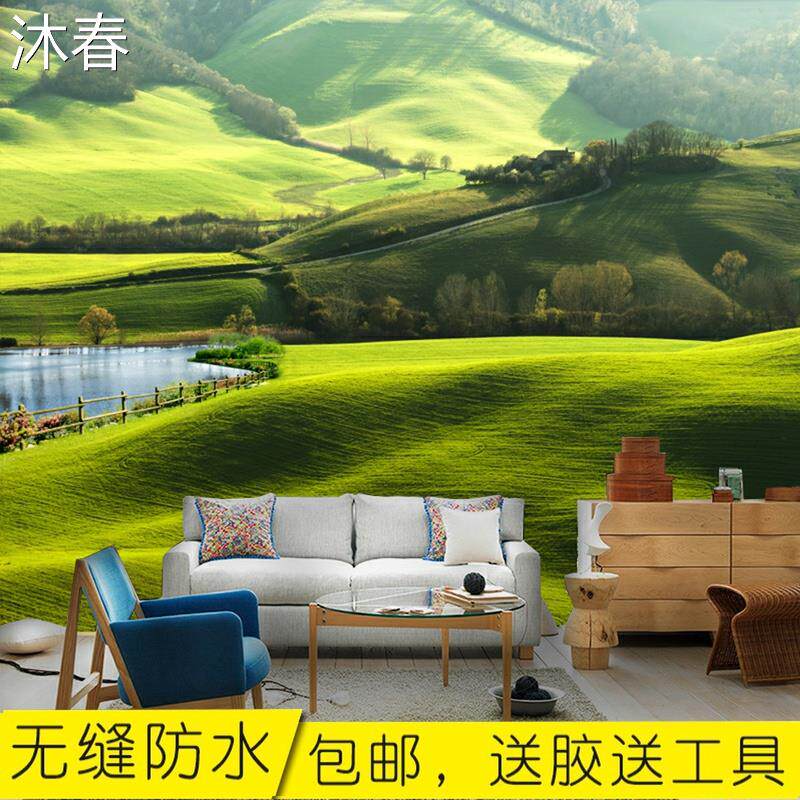 l田园清新卧室壁纸大自然风景沙发背景墙纸草原办公室餐厅装饰壁