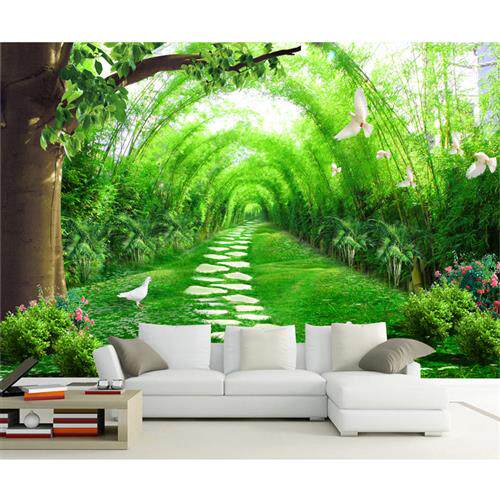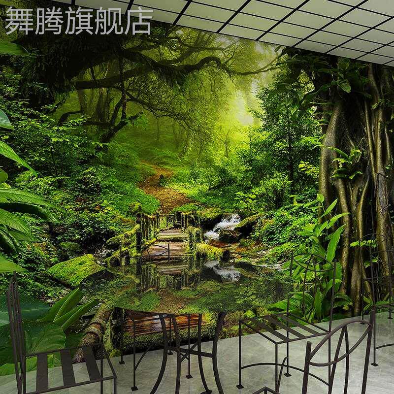8D大自然绿色森林风景墙布立体空间延伸壁纸沙发壁画前台壁纸