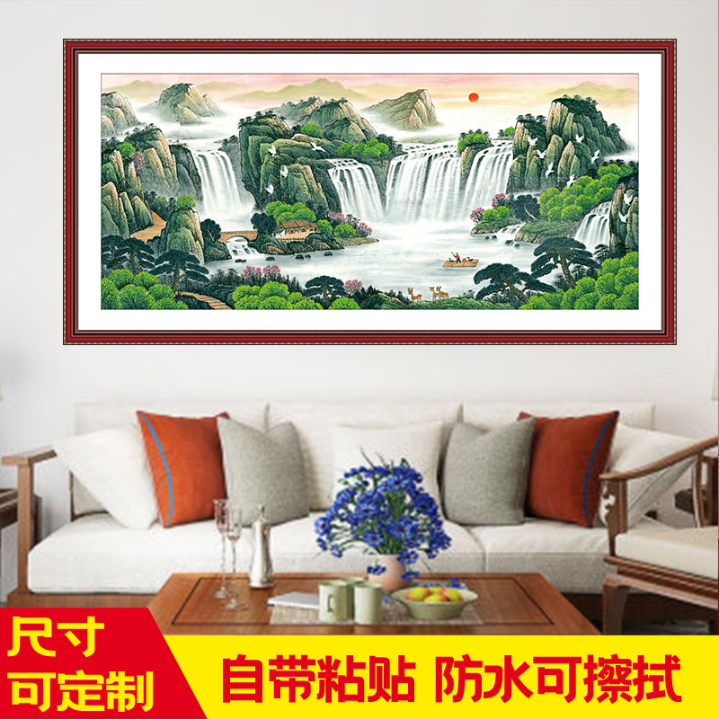 自粘山水画贴纸客厅装饰画风景画墙贴大自然沙发背景墙办公室贴画