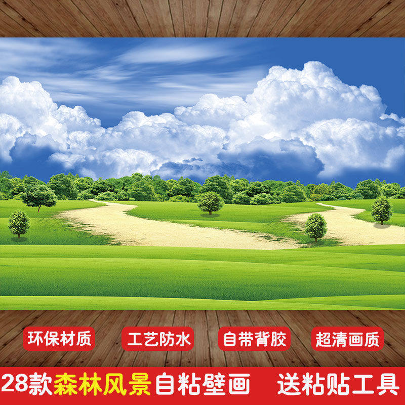 .大自然风景墙纸自粘墙纸墙贴墙上装饰画卧室客厅电视沙发背景壁