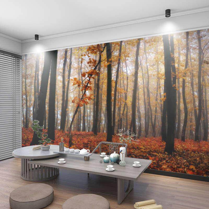 大自然森林风景墙纸电视背景墙壁纸沙发卧室客厅影视墙装饰壁画布