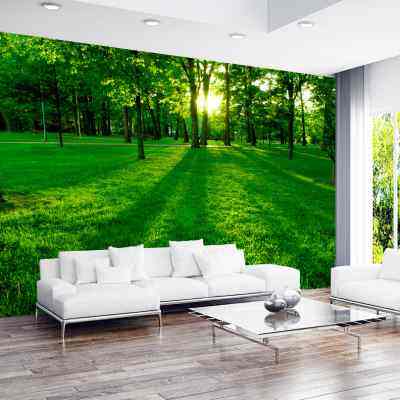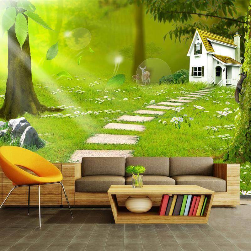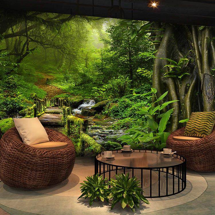 3D大自然风景壁布立体延伸森林客厅沙发背景墙布田园绿色树木壁画