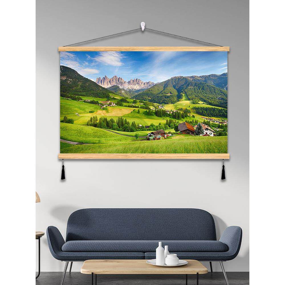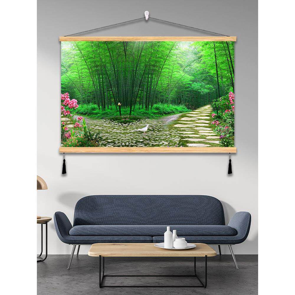 大自然风景卷轴挂画客厅沙发背景布装饰画森林草原大海免打孔墙画