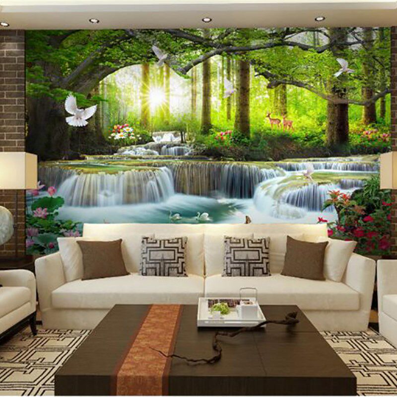 3d立体山水大自然风景壁画8d沙发现代简约海景墙布田园风森林墙纸
