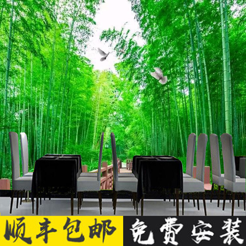 清新竹林小路3D电视壁q画大自然竹子田园风背景墙客厅沙发无缝壁