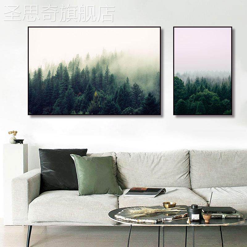 网红云奢北轻欧雾绿色森林装饰画客厅玄关沙发背景墙大自然风景