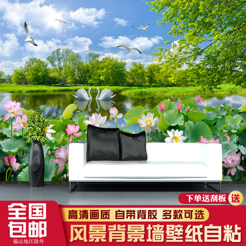 壁纸墙纸自粘电视背景墙贴画一整张直播沙发大自然风景墙壁画贴纸