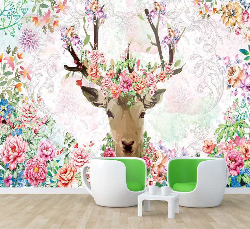 自粘贴画北欧风格鹿大型背景墙贴客厅沙发背景自然墙清新装饰壁纸