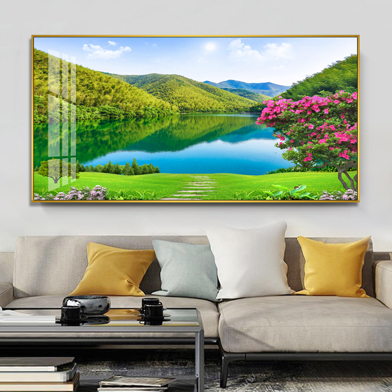 小清新客厅墙装饰画沙发背景田园风景画餐厅卧室挂画绿树大自然画