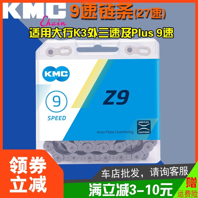 桂盟KMC山地9变速车链条27速适用大行K3Plus折叠自行车外3速链子