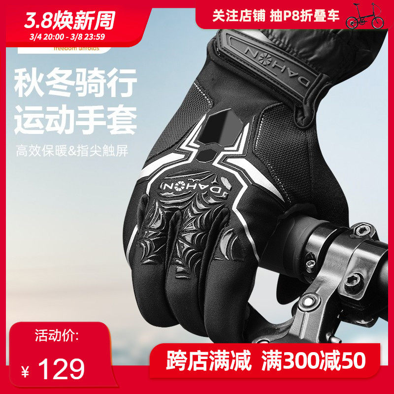 dahon大行自行车骑行手套男秋冬季电动车全指保暖防风防寒手套女