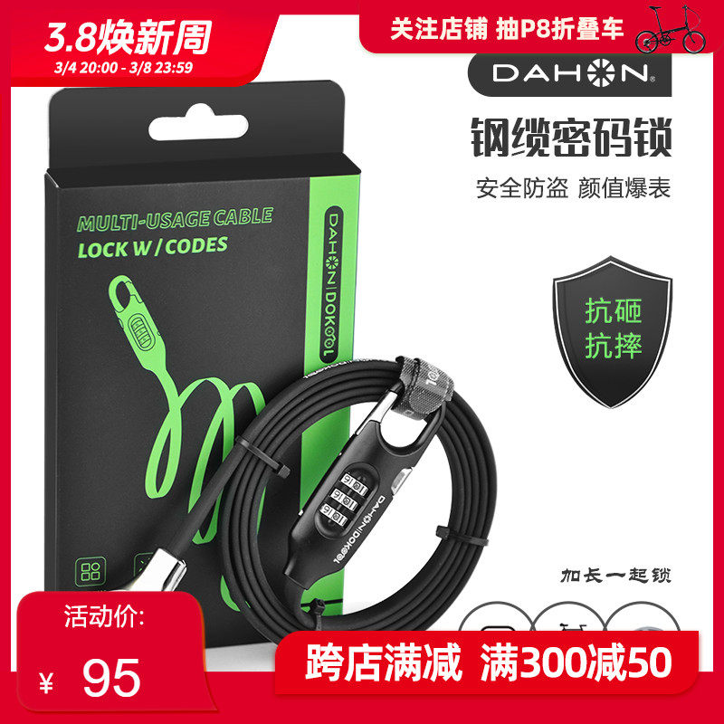 大行DAHON自行车锁密码锁防盗加粗便携式电动车锁山地车防盗锁5位