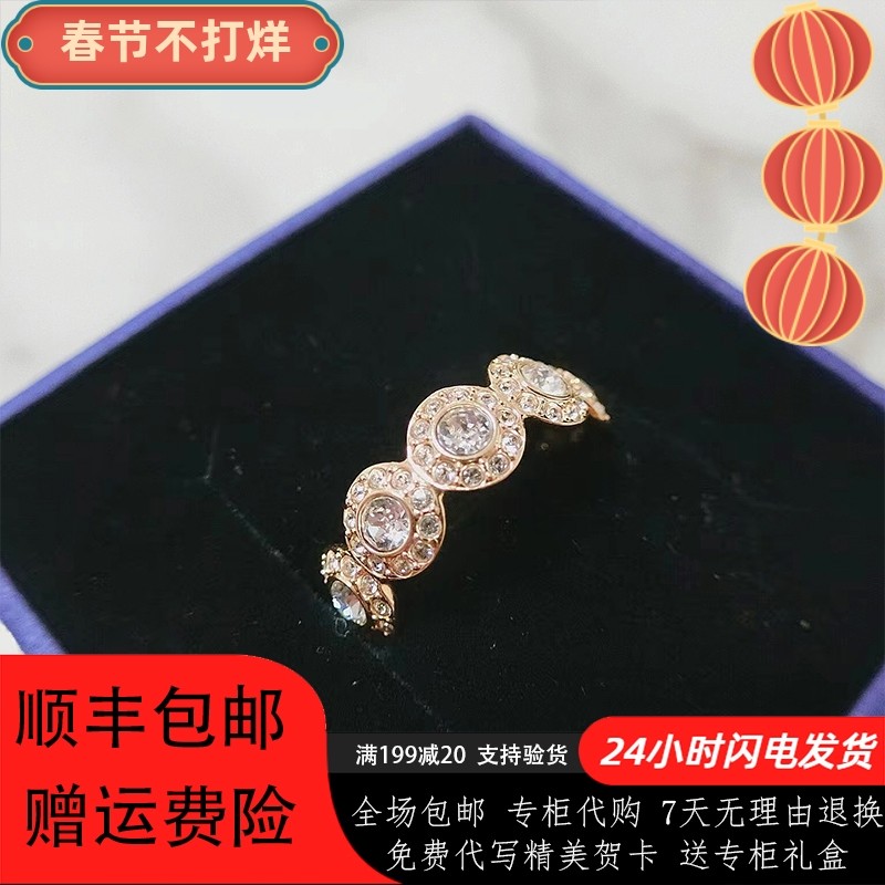 Rare闪亮纽扣戒指女施华洛元素蓝色天使之泪圆形水晶指环生日礼物