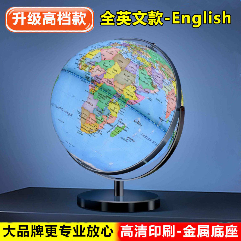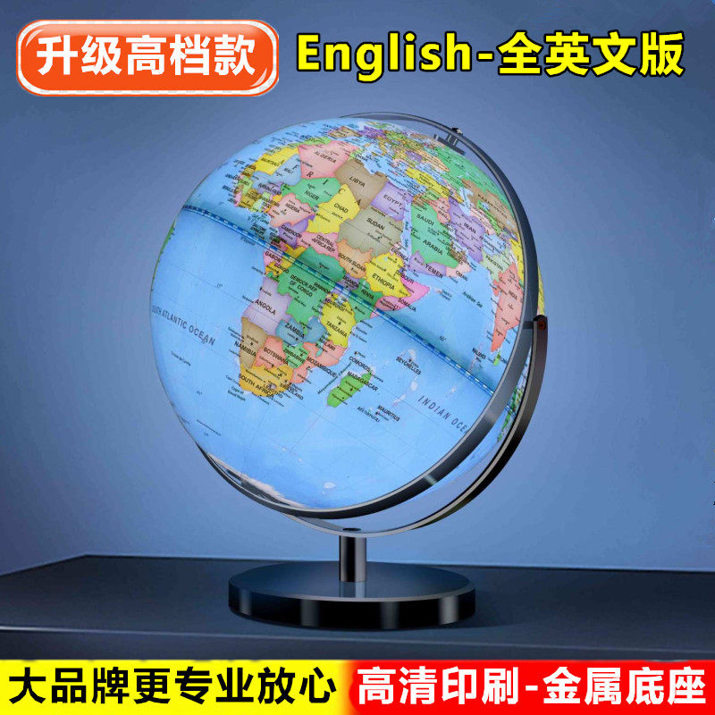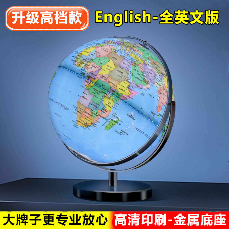 天屿20cm高清大号学生教学带台灯发光32cm全纯英文英语万向地球仪