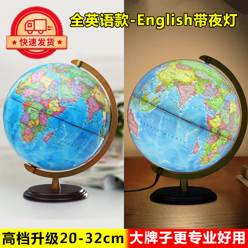 天屿地球仪大号码32cm中小学生教学带台灯发光全纯英文英语高档20