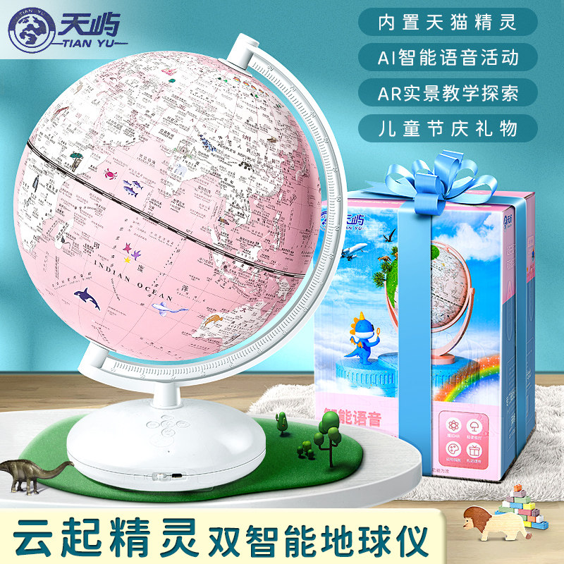 【天屿】天猫精灵地球仪儿童启蒙粉色女童男孩生日礼物会说话的台灯双子座马卡龙ar发光3d立体悬浮ai智能摆件