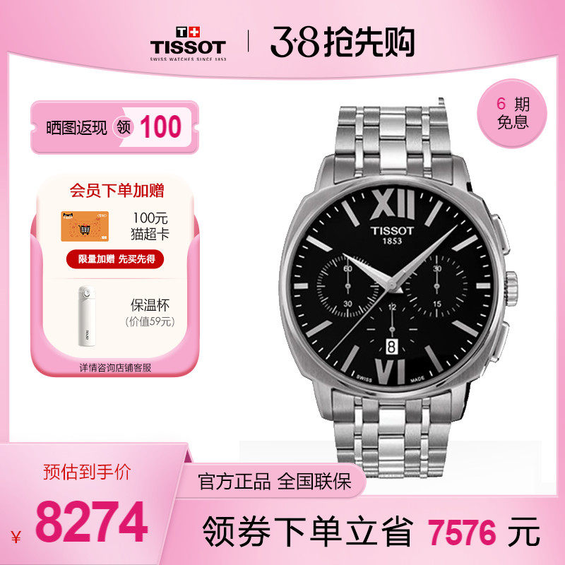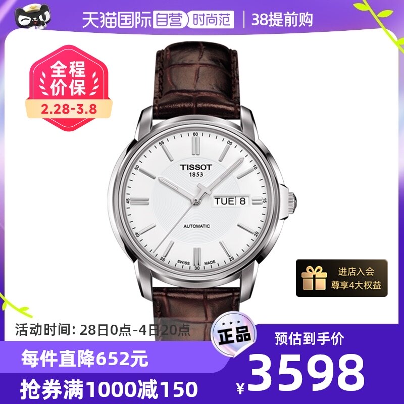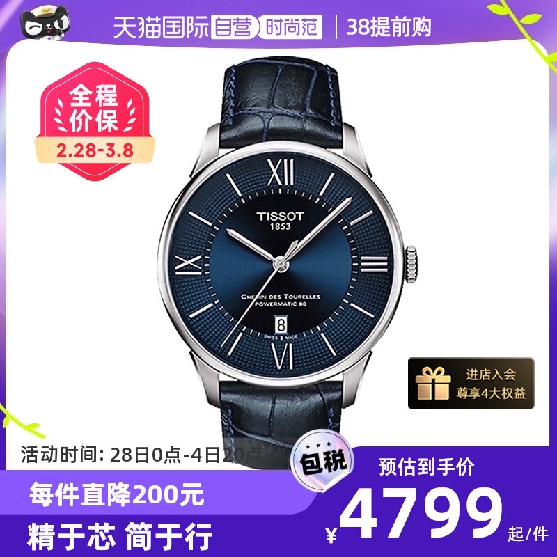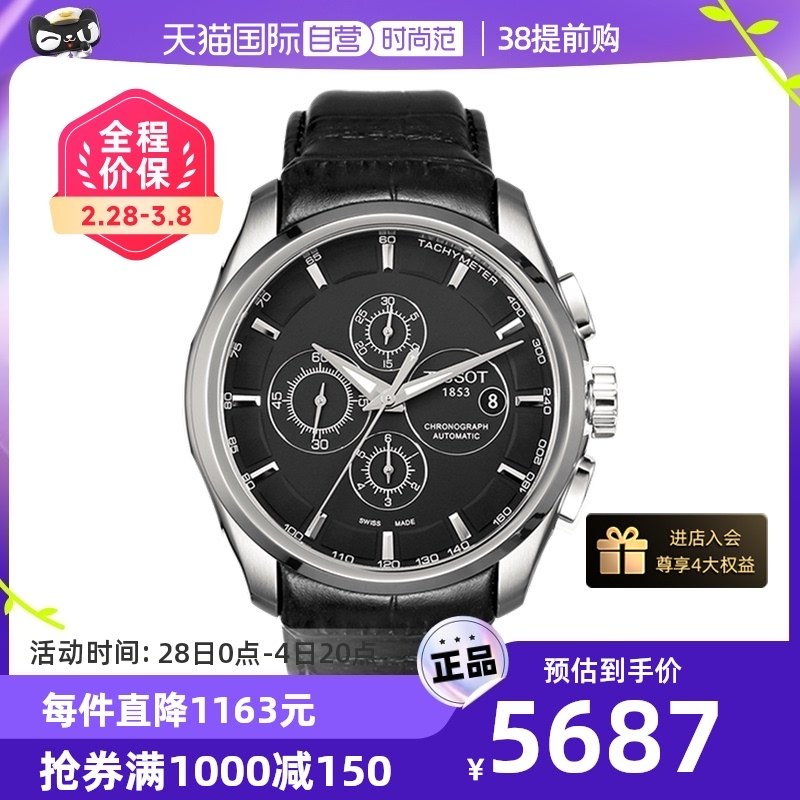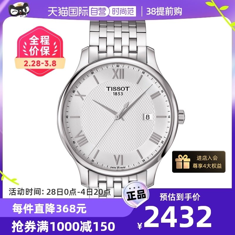 天梭男手表Tissot瑞士机械表皮带水钻不锈钢送礼物T0864071605700