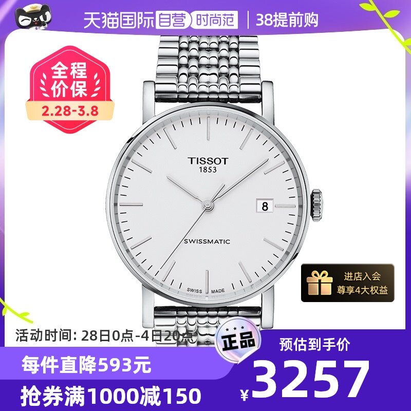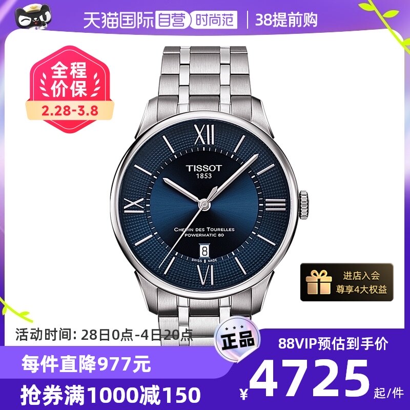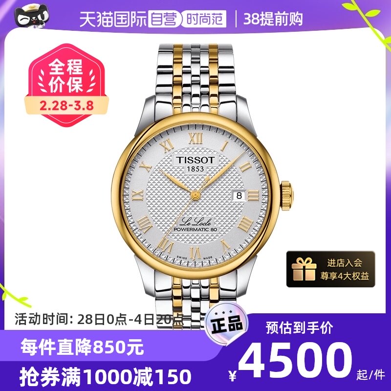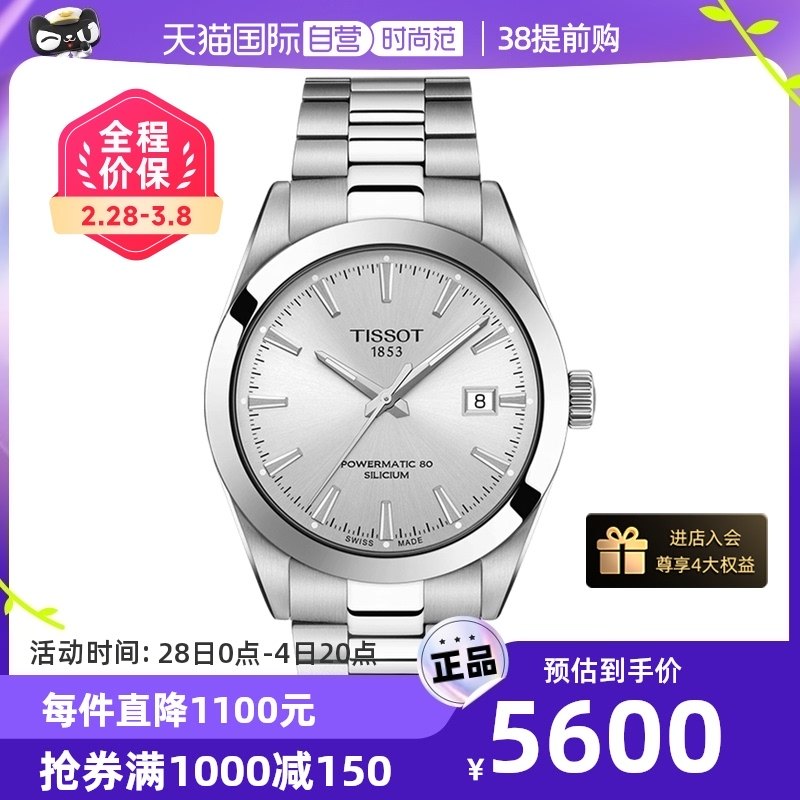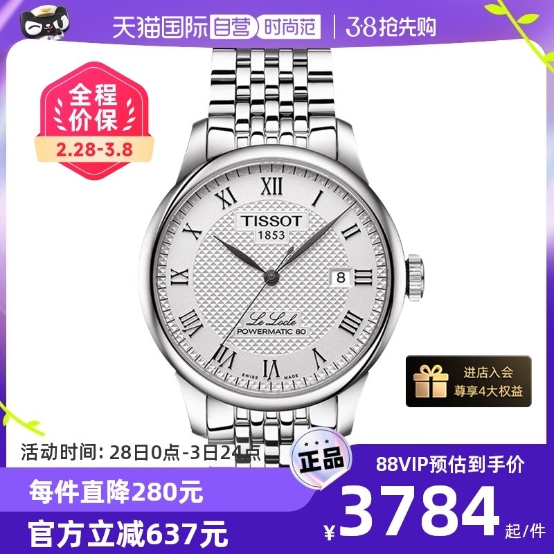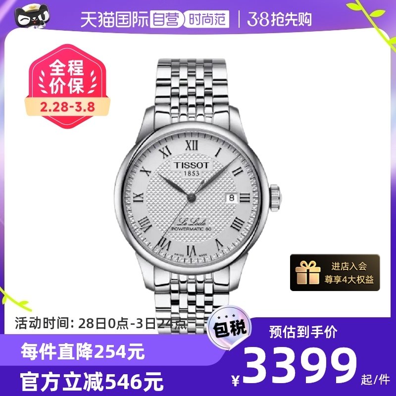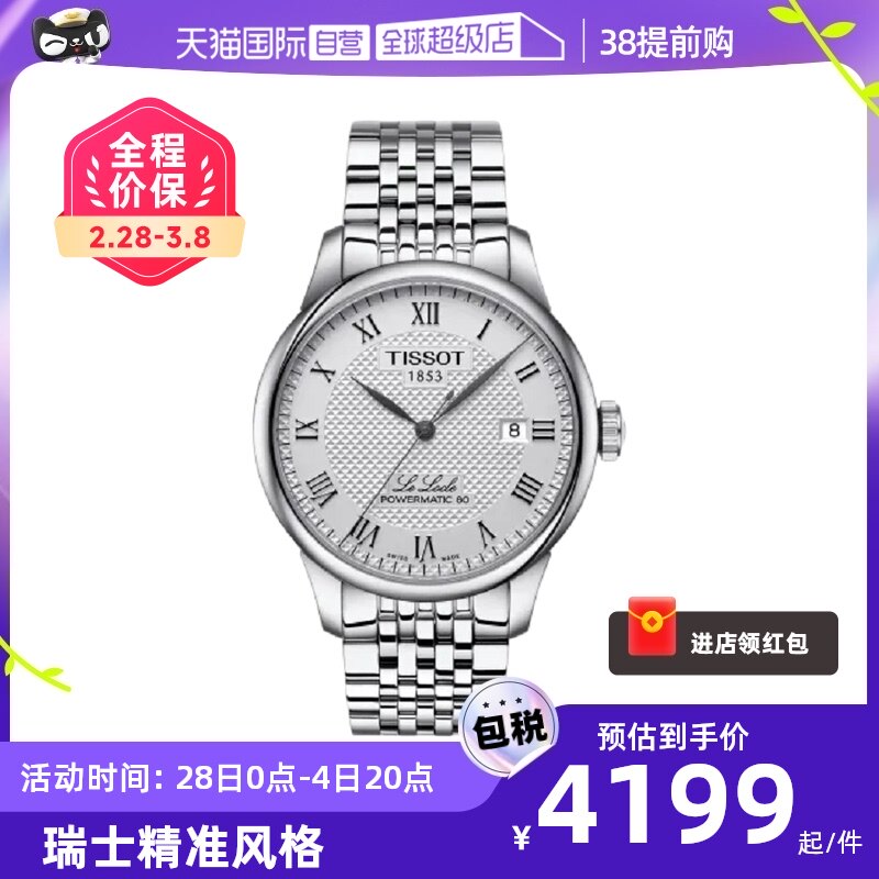 【自营】Tissot天梭力洛克系列瑞士机械表手表男士腕表男钢带男款