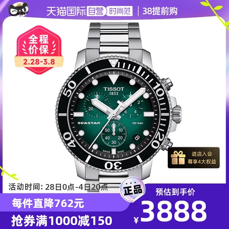 【自营】TISSOT天梭海星系列钢带瑞士石英男士手表礼物机械表计时