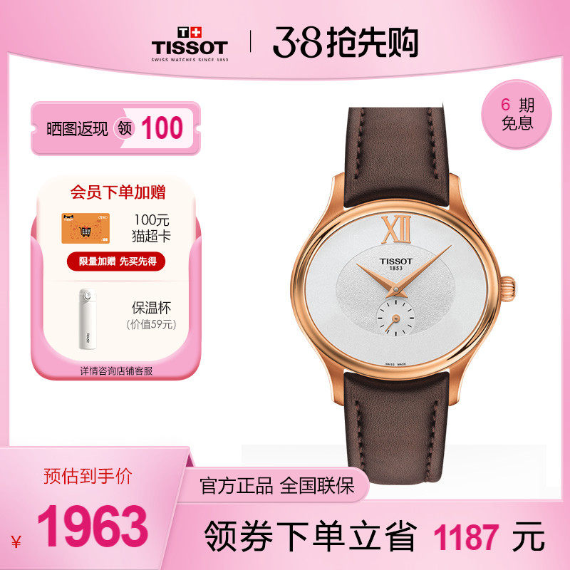 Tissot天梭瑞士进口皮带简约石英手表女七夕情人节送男女朋友礼物