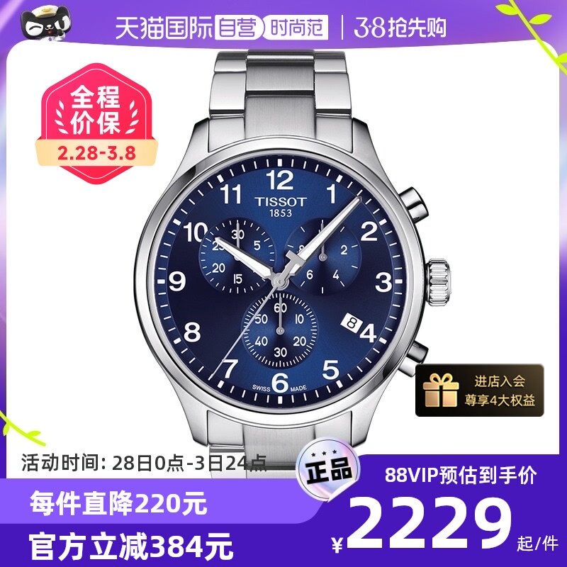 【自营】中古未使用天梭运动系列速驰 男表石英瑞士手表 三眼计时