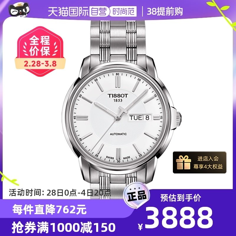 天梭男手表Tissot瑞士机械表钢带运动送礼物腕表T1204071105100